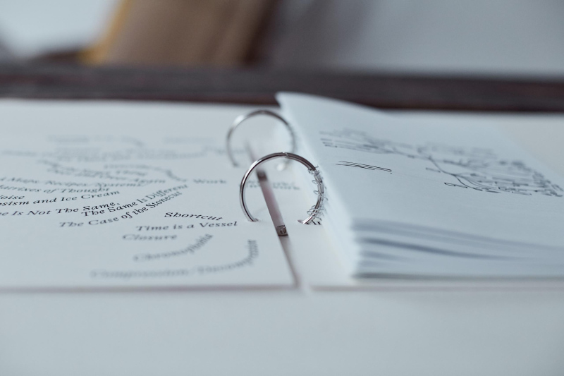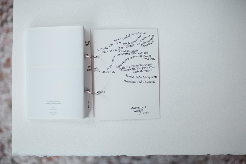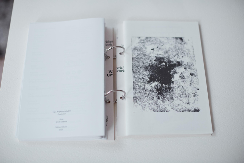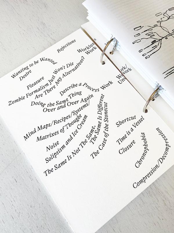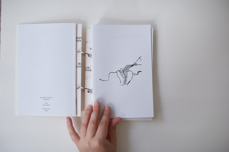 Work/Unwork is a compilation of texts and images that center around the theme of artistic process and labour. Comprised of seven separately bound booklets, the reader is free to engage with the different texts in whatever order they prefer.