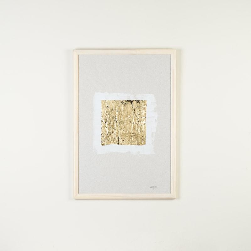 Mixed media project, gold leaf and acrylics on paper, 38x51cm & 45x51cm, pvc print on paper, 60x80cm (inner dimensions) and pvc print on cotton, 60x80cm (inner dimensions)