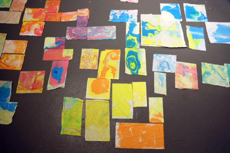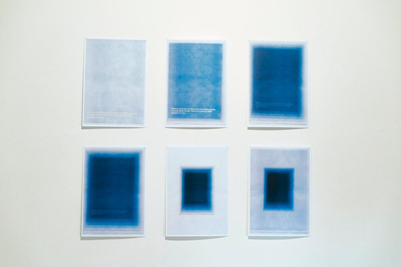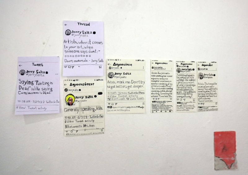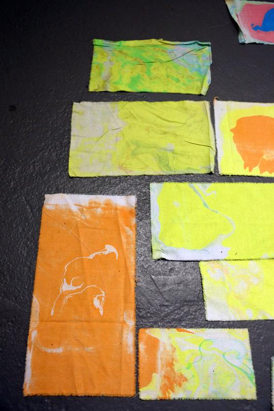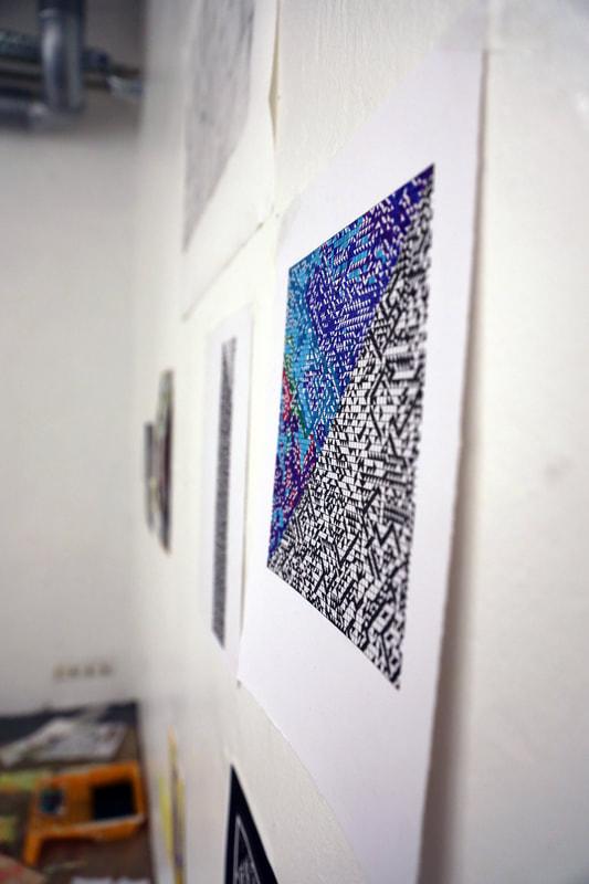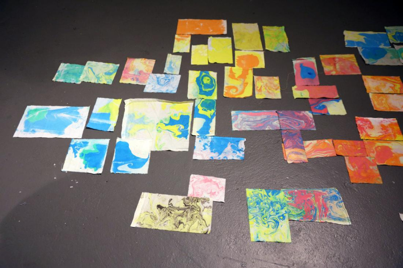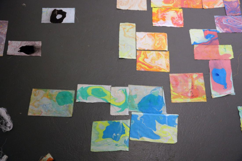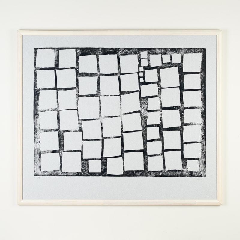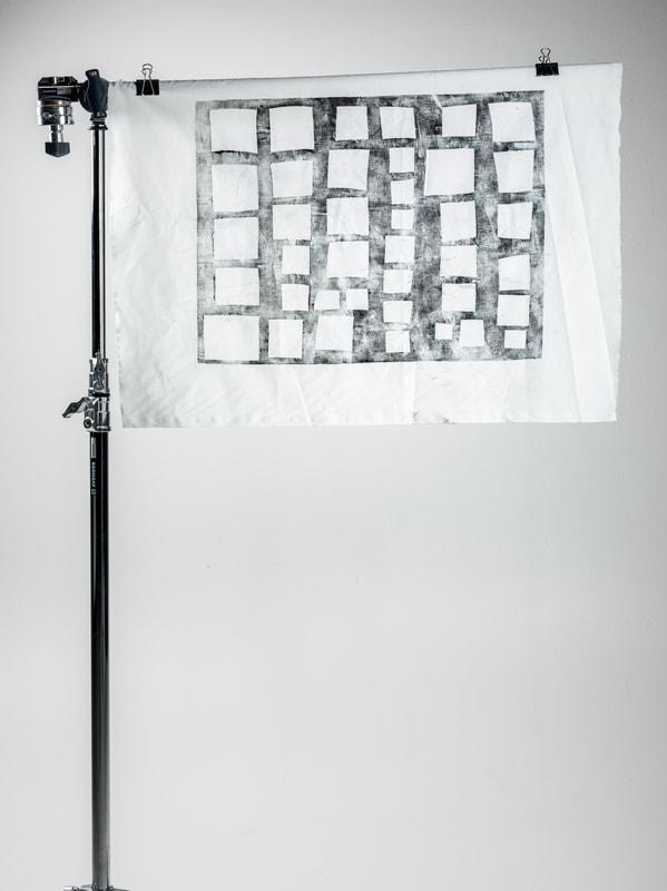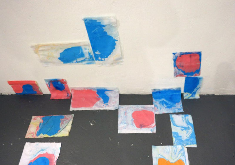 Presented at the experimental group exhibition and artist' micro-residency Can You See Work? (iii), Vent Space Gallery, Tallinn, Estonia, 2022A series of experimental artworks made during residency at VENT Space Gallery in Tallinn Estonia. Ink drawings of squares and rectangles and tweets about art as well as marbling on cotton were arranged in various grid formations in the space. The artworks reflected the experience of working in that space alongside the other participating artists.