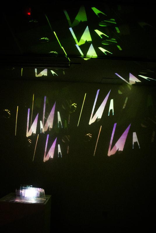 Projection mapping installation, projector, plexi glass, dimensions variable PROJECTile group Exhibition at Cooper Gallery Project Space, Cooper Gallery, Dundee, Scotland, 2016