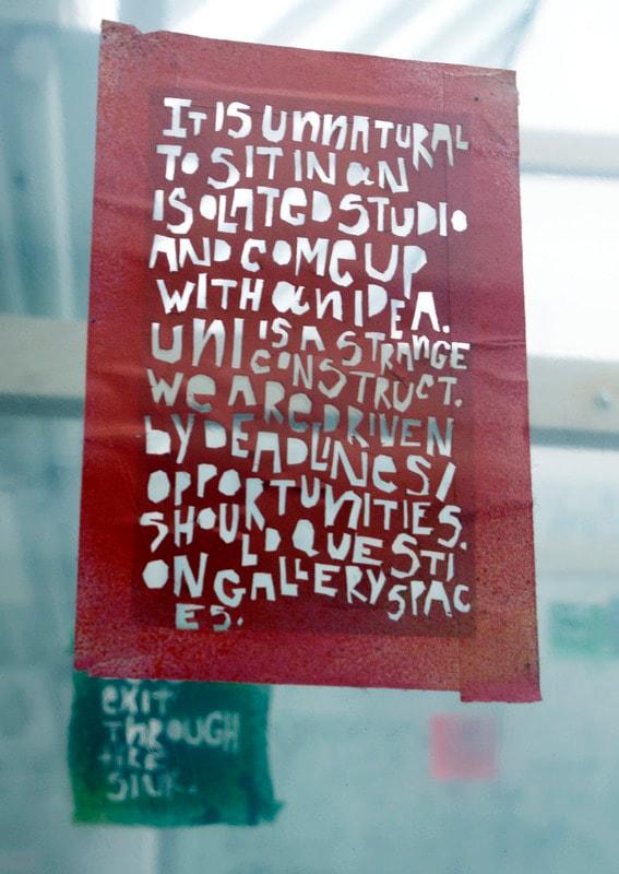 Produced as part of bachelor degree dissertation: Body of Writing. A Critical Study of Two Text Based Performances: Their Unique Use of the Word and the Dynamic Employment of the Body as Canvas, DJCAD, Dundee, Scotland, 2015 -