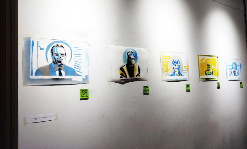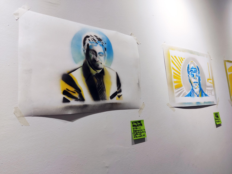 Series of posters, spray paint on paper and post-it notes, 32x45cm and 7,5x7,5cm respectively