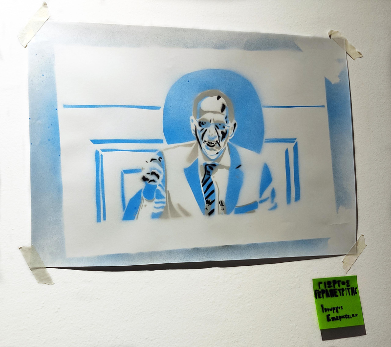 Deriving from a research into contemporary colonial financial policies; politicians, CEOs and businessmen who have participated in the privatization of Greek lands and resources are depicted in order to put names and faces to this regime.