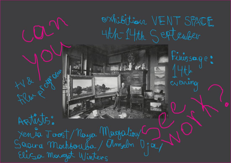 What does the exposition of artistic labour look like, as opposed to the exhibition of artistic product? Can You See Work? (iii) was an invitation to think about what galleries are typically used for: the exhibition of results. Five artists worked in VENT Space and showed fragments of their processes. We invited members of the public to visit the space in order to co-work, watch films/tv and have discussions.