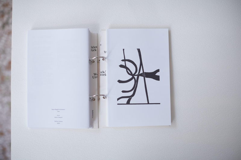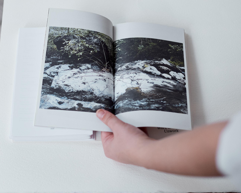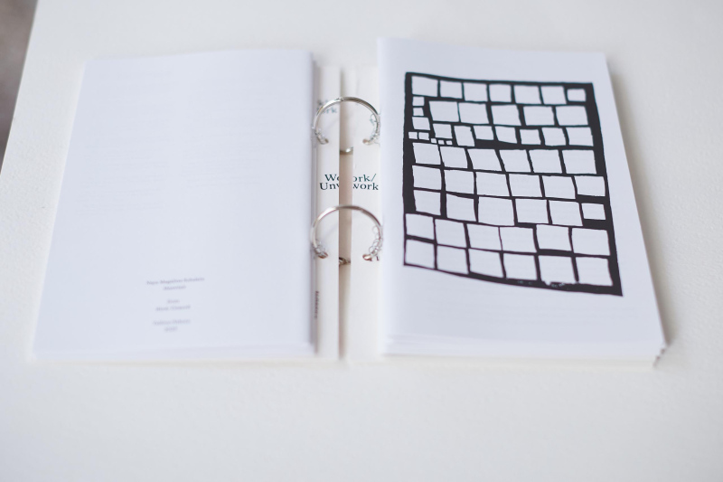 Work/Unwork is a compilation of texts and images that center around the theme of artistic process and labour. Comprised of seven separately bound booklets, the reader is free to engage with the different texts in whatever order they prefer.