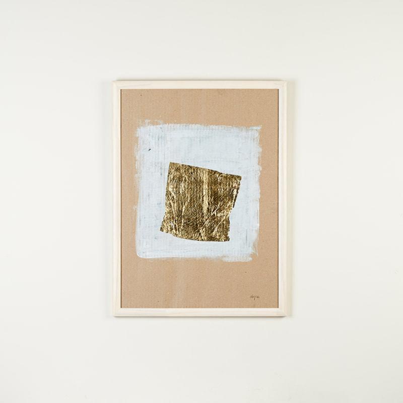 Mixed media project, gold leaf and acrylics on paper, 38x51cm & 45x51cm, pvc print on paper, 60x80cm (inner dimensions) and pvc print on cotton, 60x80cm (inner dimensions)