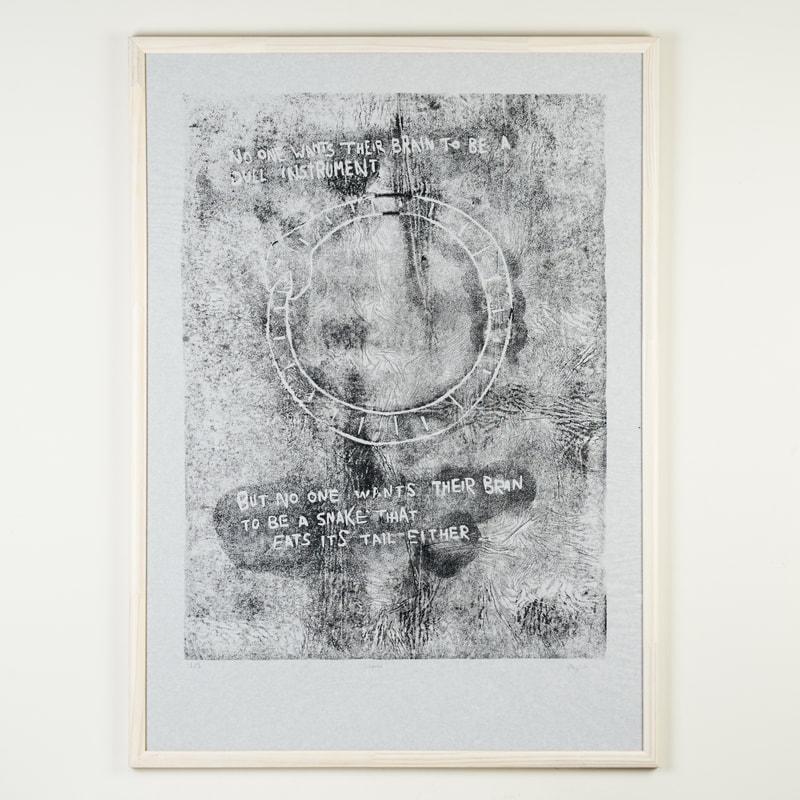 Athens, Greece, 2019-ongoingThis series of prints and mixed media works on paper were produced as accompanying material for for the Masters Thesis Project: Iterations and moments of Work and Unwork: Some Thoughts and Some Images. Based on explanatory sketches found in philosophy books, these works showcase squares, grids and certain natural shapes such as a snake eating it's tail or an ameoba eating a human.