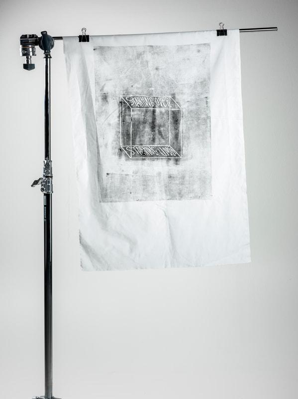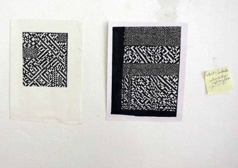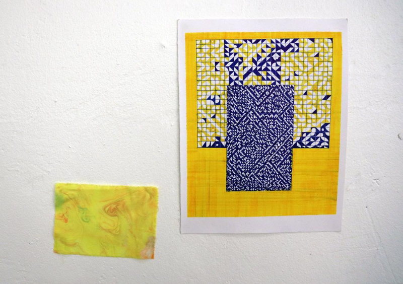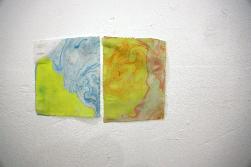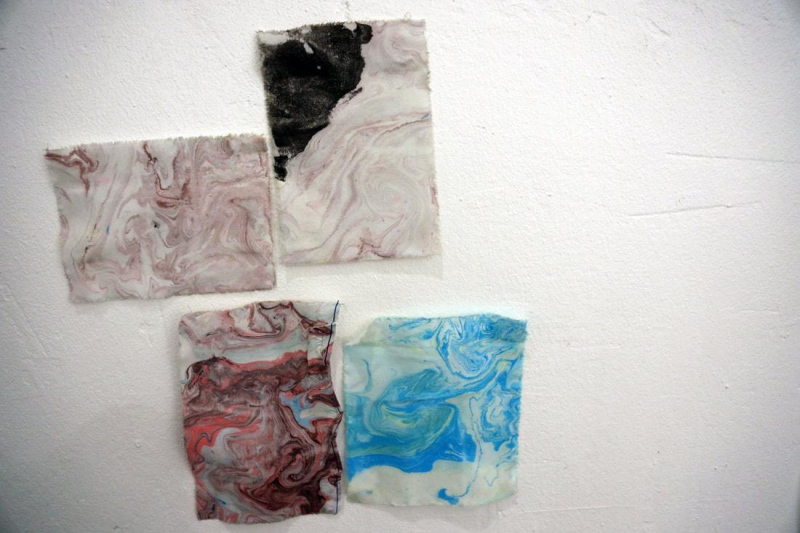 Presented at the experimental group exhibition and artist' micro-residency Can You See Work? (iii), Vent Space Gallery, Tallinn, Estonia, 2022A series of experimental artworks made during residency at VENT Space Gallery in Tallinn Estonia. Ink drawings of squares and rectangles and tweets about art as well as marbling on cotton were arranged in various grid formations in the space. The artworks reflected the experience of working in that space alongside the other participating artists.