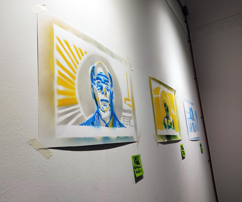 Series of posters, spray paint on paper and post-it notes, 32x45cm and 7,5x7,5cm respectively